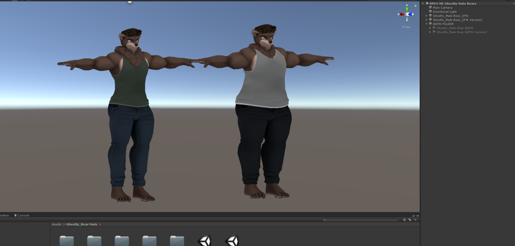Unity package that has the Ghostly Bears, male version, one SFW base and one N S F W. Model and texture source files are included for customizations.