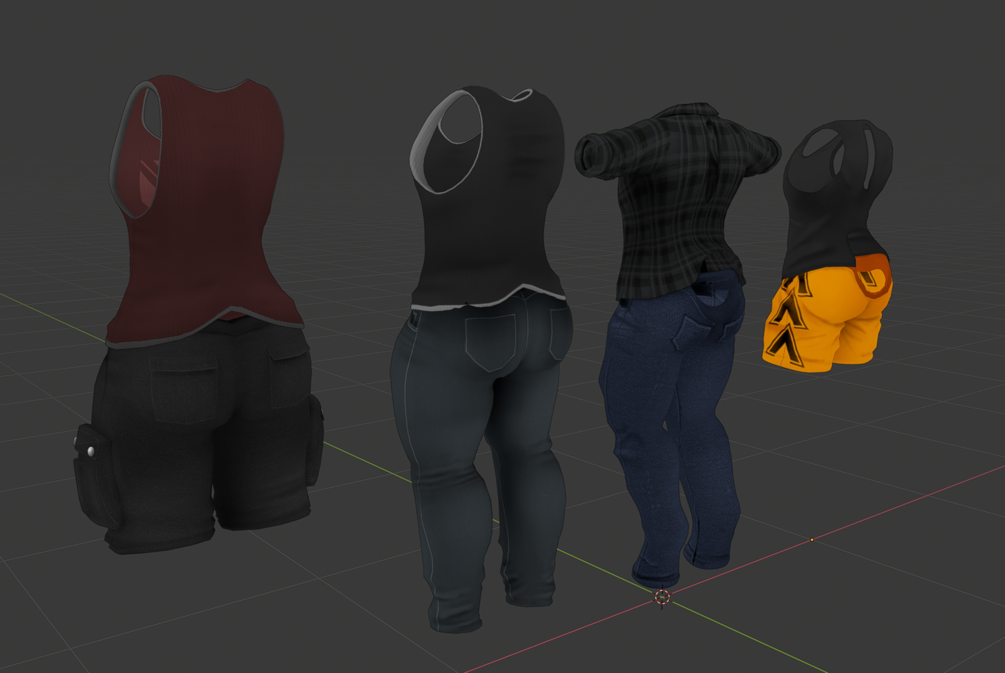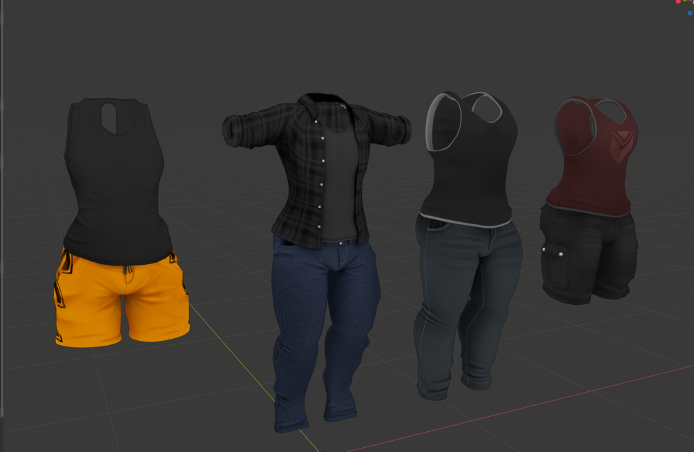 These are only mesh assets for creators to mod. These outfits will require Blender knowledge in editing to fit other bases, they are not universal and will not fit perfectly on every base.