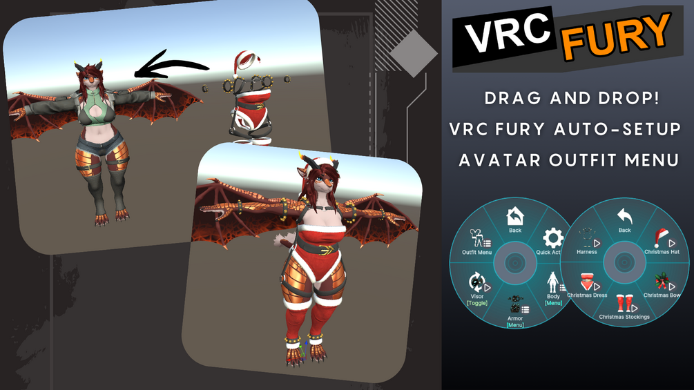 ๐ Christmas outfit, fitted for the Female Dragons! Using VRCFury, easy drag and drop onto the avatar and upload!