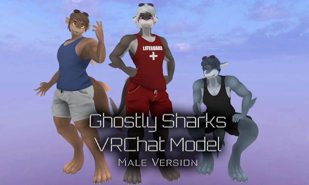 🌊🦈Introducing the new Ghostly Male Sharks. A strong and handsome shark avatar base model for social virtual platforms for VRChat!