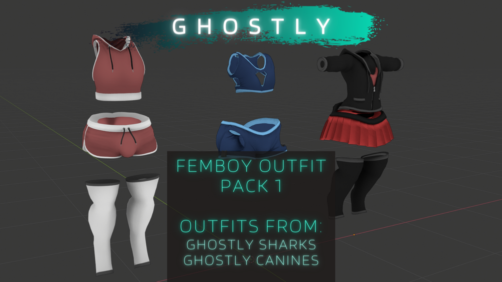 Ghostly Femboy outfit pack 1 includes separate outfits from the Ghostly femboy Sharks and Canines. All source files and raw textures like PSD and substance painter files are included.